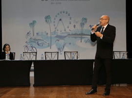 Dr. Giovanni Pellacani (Itália), apresentou técnicas de imagem que permitem antecipar o diagnóstico do câncer da pele como a dermatoscopia e mapear cirurgias do câncer da pele através da microscopia confocal, tomografia óptica coerente e ultrassonografia cutânea de alta resolução.